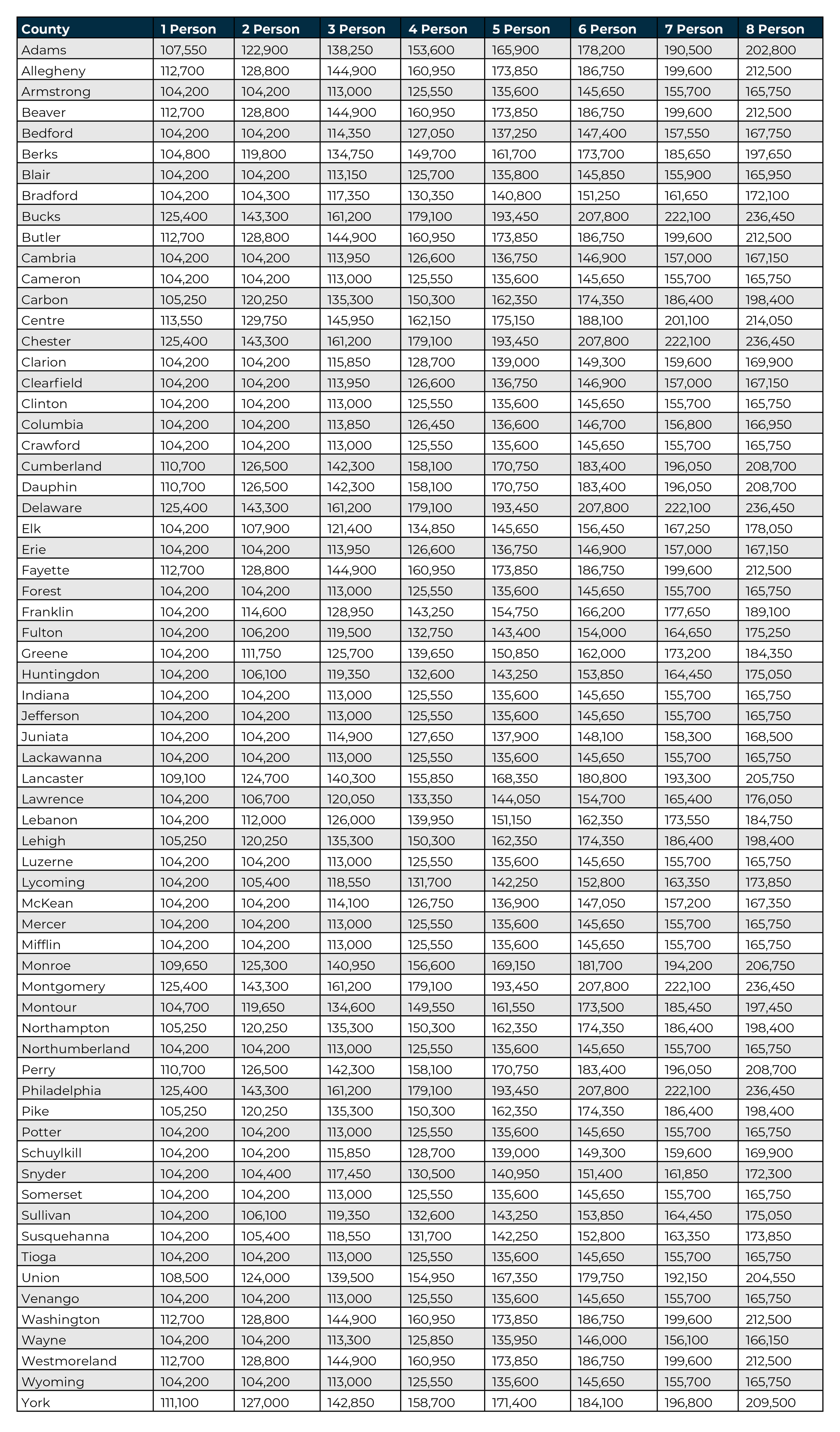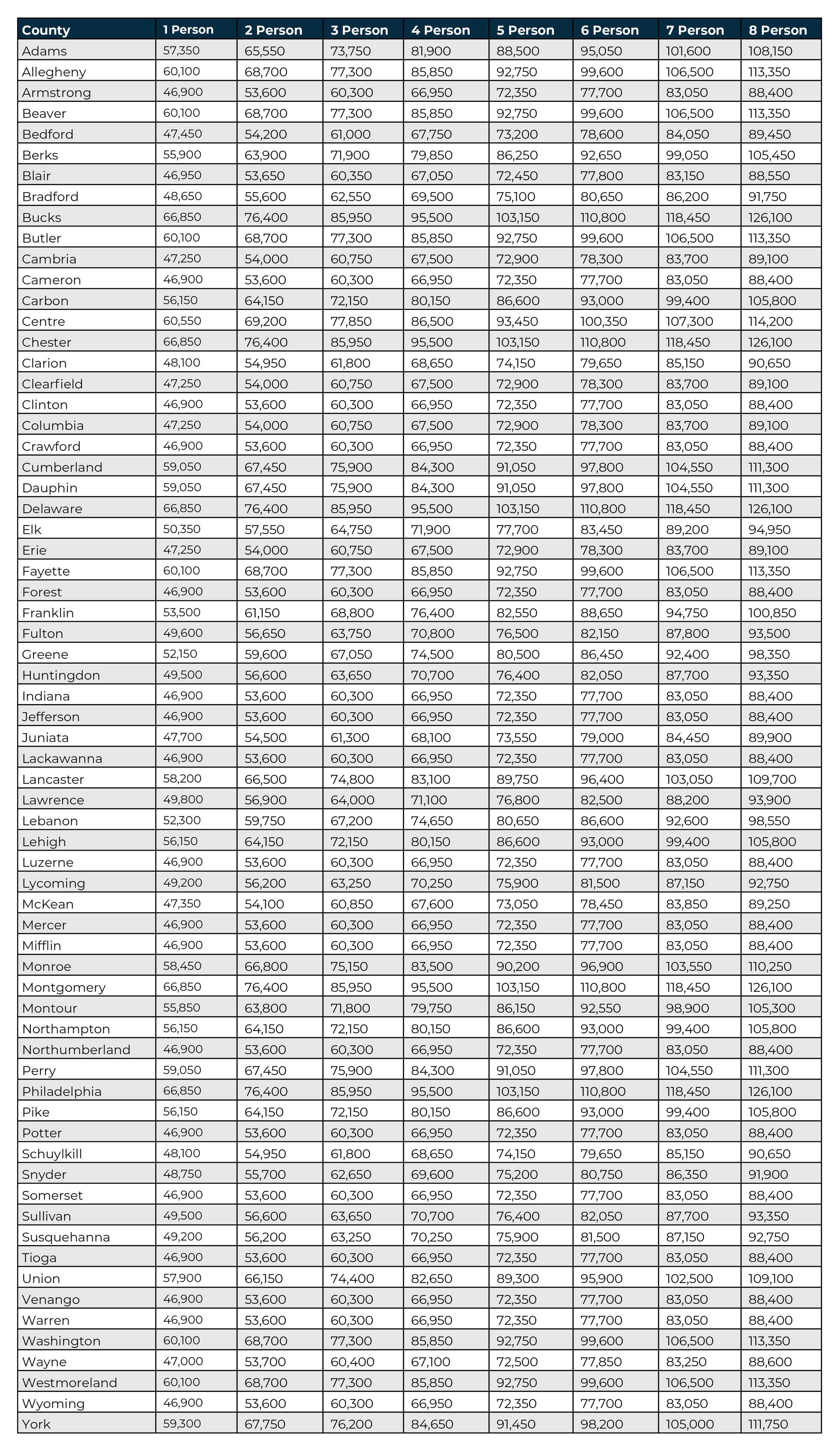 Use the below charts to determine if your income level meets eligibility requirements.